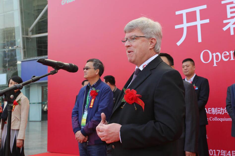 中國(guó)建筑材料聯(lián)合會(huì)會(huì)長(zhǎng)助理、中國(guó)國(guó)際貿(mào)易促進(jìn)會(huì)建材料分會(huì)副會(huì)長(zhǎng)、中國(guó)摩擦密封材料協(xié)會(huì)常務(wù)副理事長(zhǎng)王耀先生、孫忠義先生、中國(guó)摩擦密封材料協(xié)會(huì)輪值理事長(zhǎng)、浙江國(guó)泰密封材料股份有限公司常務(wù)副總經(jīng)理吳益民先生、山東圣泉集團(tuán)股份有限公司營(yíng)銷總監(jiān)薛峰先生、杰瑞先生、美國(guó)SAE制動(dòng)年會(huì)原任主席馬溫先生、成都世紀(jì)城新國(guó)際會(huì)展中心副總經(jīng)理夏珺女士為開(kāi)幕式剪彩?,F(xiàn)場(chǎng)上千名學(xué)者、經(jīng)銷商和觀眾參加了開(kāi)幕式。